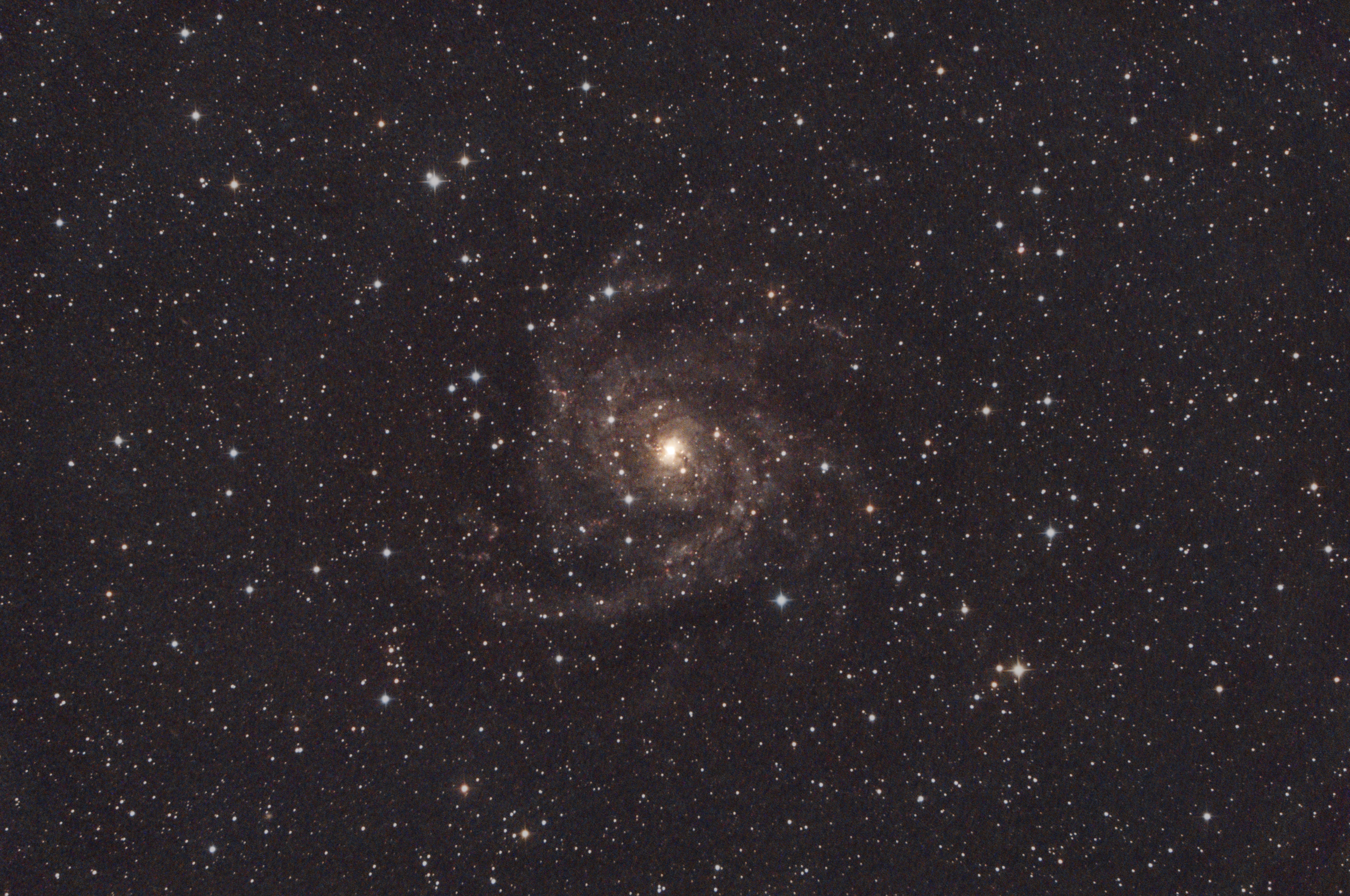 Ik heb de achtergrond vrij licht gelaten omdat anders al het detail van het sterrenstelsel weg valt. Dit komt omdat er tussen het sterrenstelsel en de aarde een arm van de melkweg zit. Je ziet dus de gaswolken van de melkweg wat een “stoffig” resultaat geeft. Ook zijn er dus heel veel sterren te zien, deze maken geen onderdeel uit van het sterrenstelsel maar staan veel dichterbij in onze eigen melkweg.